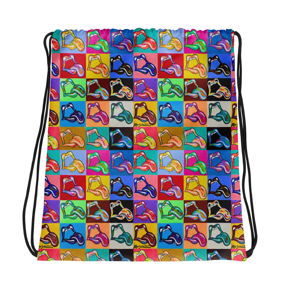 Express yourself in eye-catching fashion with the 20 Licks drawstring bag! It's the perfect way to show off Ruby's newest artwork while hitting the gym, with drawstrings on top and narrow straps for a sporty look. Don't miss out on this must-have!